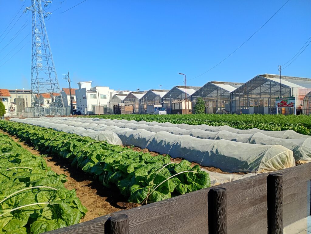 もともとは練馬で代々続く農家さんで、大根やカブ、ネギなどを作られていたそうです。そのため、いちごのハウスの周辺にも広大な農地では、いちごのシーズン以外にも季節の野菜の収穫体験をさせてもらえます。