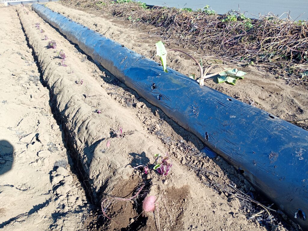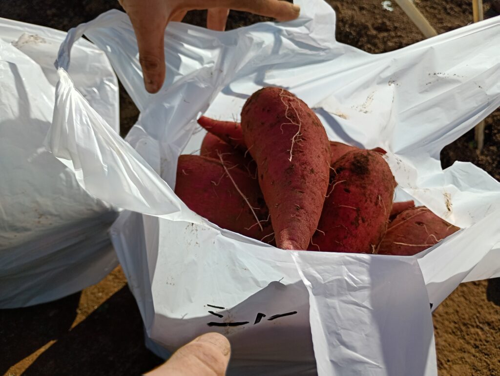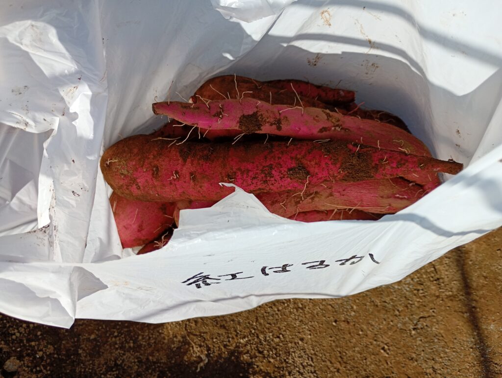 種類は紅はるかとシルクスイートがあり、3株で1,200円でした。ただ、株によって当たり外れがあったりするので、細い芋しかないような場合はおまけで芋をプレゼントしてくださったりするみたいです(ありごとうございました)。