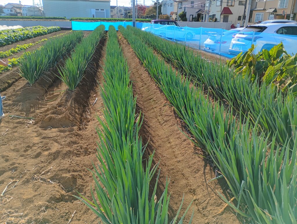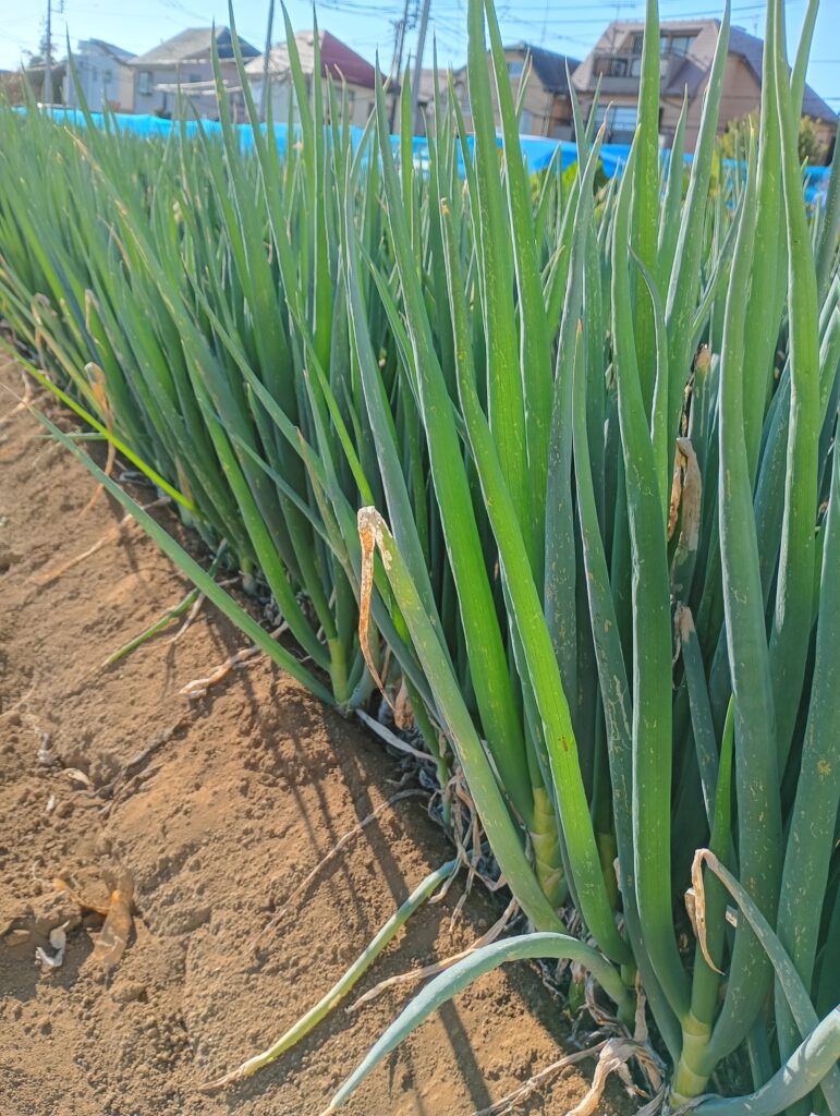 畑に並んだネギが見事に育っていますね。ピンと立った葉からは、生き生きとした生命力が感じられます。一本抜くと、美味しそうなネギの香りがします。