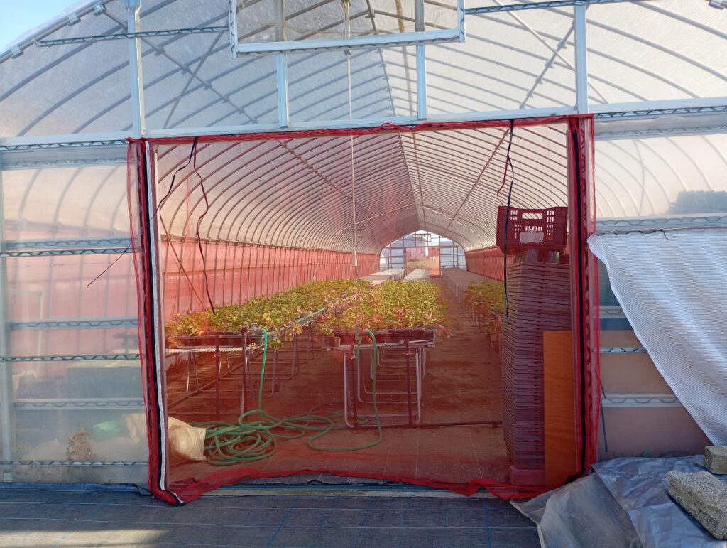 となりのハウスには苗が置いてあります。イチゴ農家さんはなかなか休みがないそうで、毎日毎日1万株の葉を剪定したり、ランナーを切ったりしているそうです。