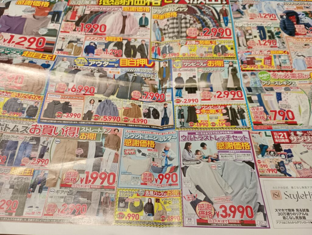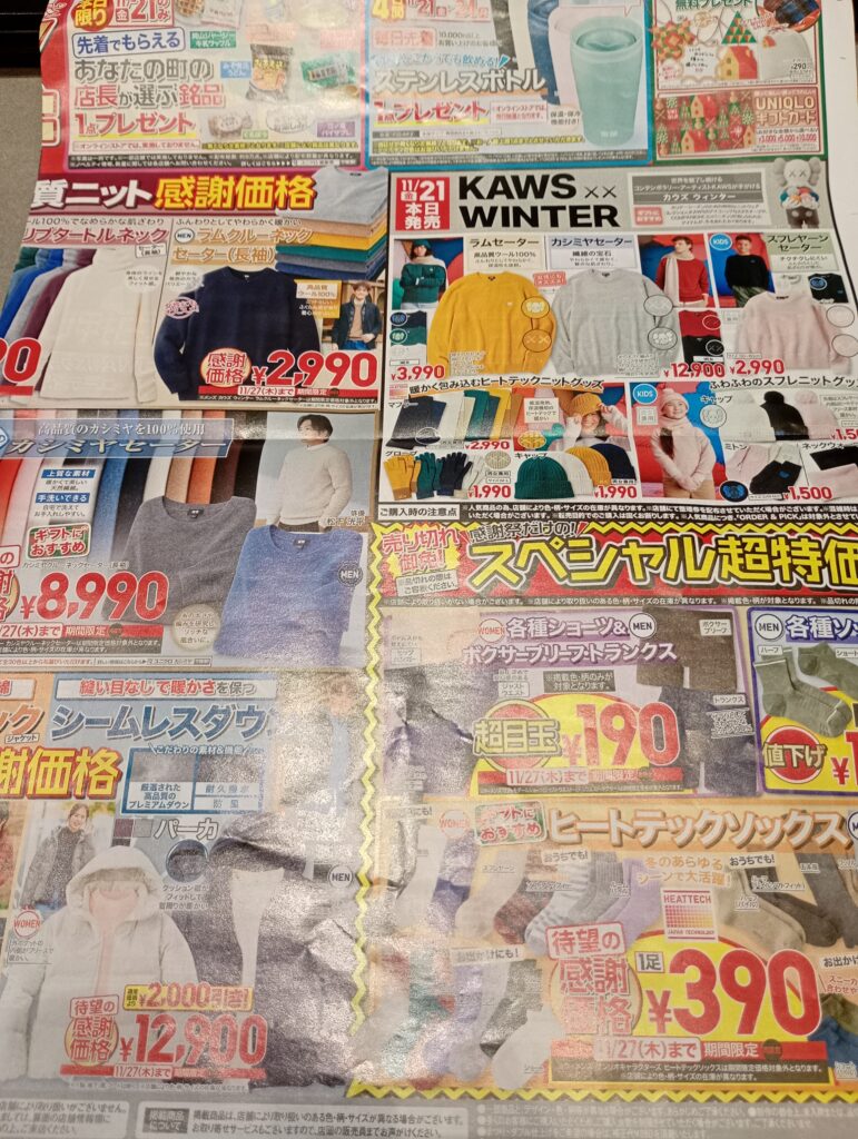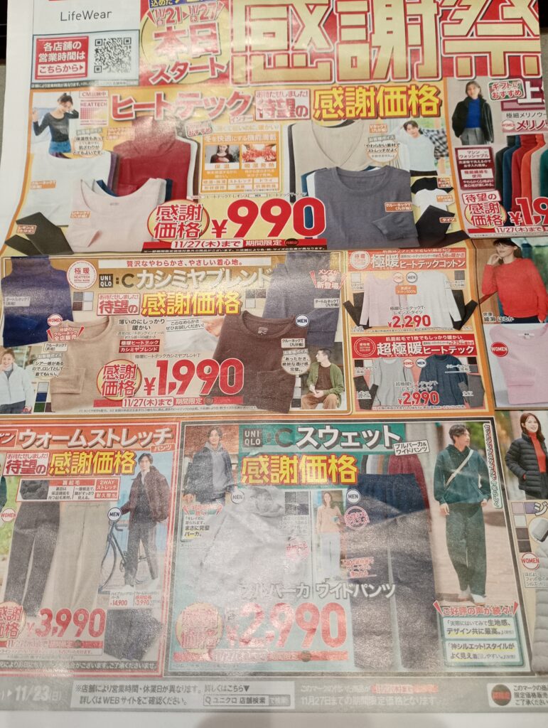 店内には広告がありましたので、チラシの写真を掲載してみます。みなさんもよかったらユニクロに足を運ばれてみてはいたかがでしょうか。