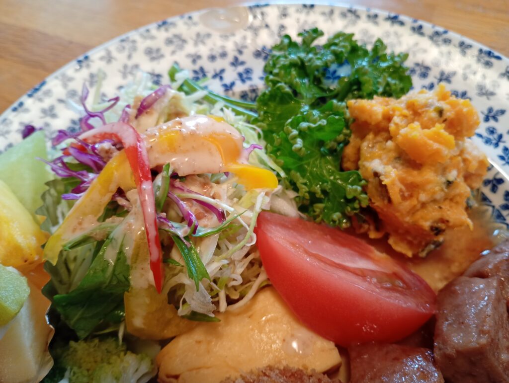 11時から14時まで提供される「日替わりランチ(830円)」は、驚きのボリュームとバランスを誇ります。