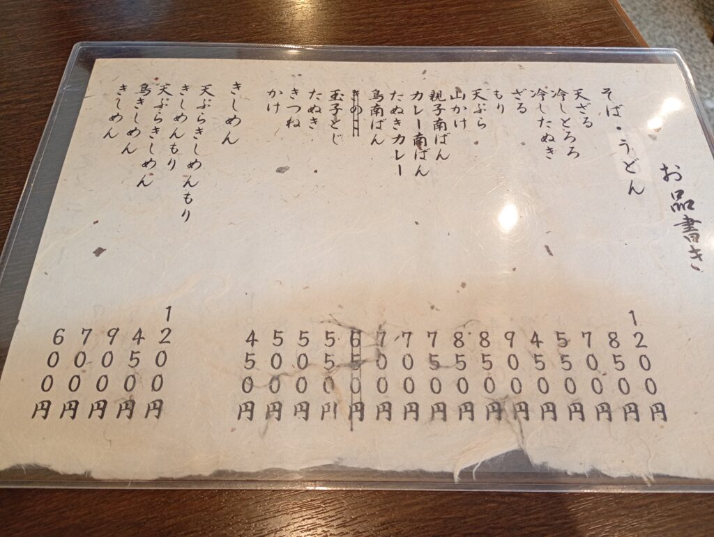 店内はテーブル席が6卓ほど。昔ながらのお蕎麦屋さんといった雰囲気で、ゆったりとした時間が流れています。