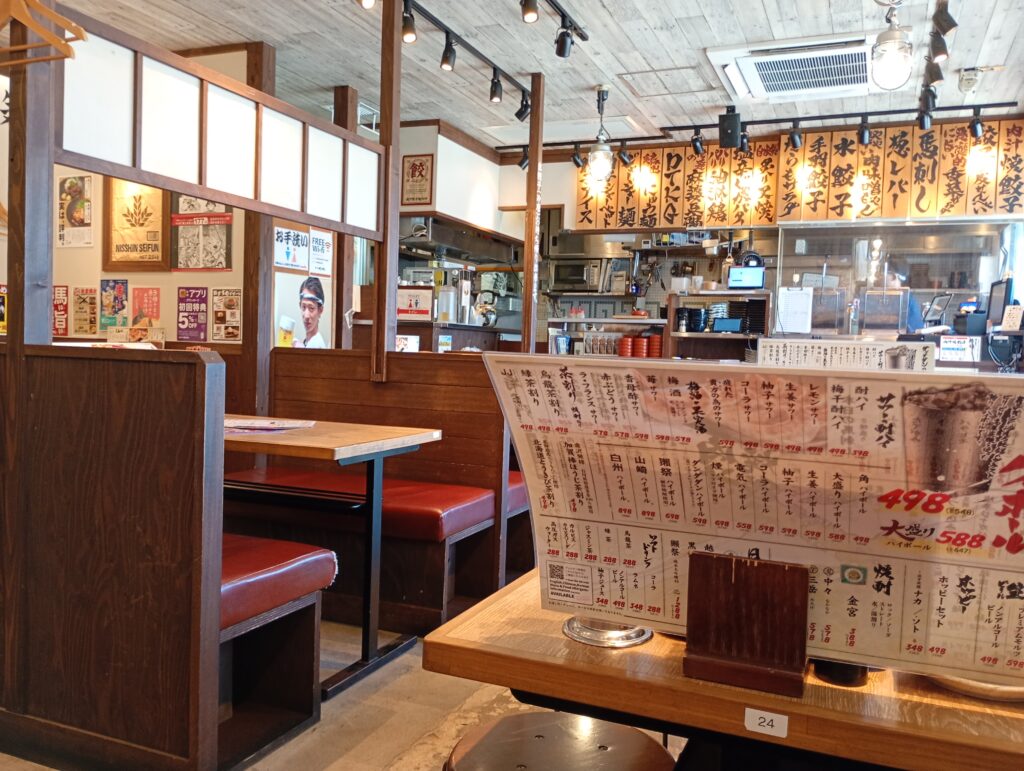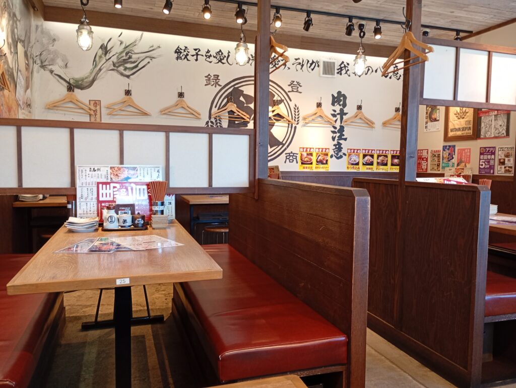 店内は赤と茶色を基調とした雰囲気のある感じです。餃子屋さんは油を使っているので床が滑ることがあるのですが、そんなこともなく整然としています(店員さんの許可を頂き店内を撮影させて頂きました)。
